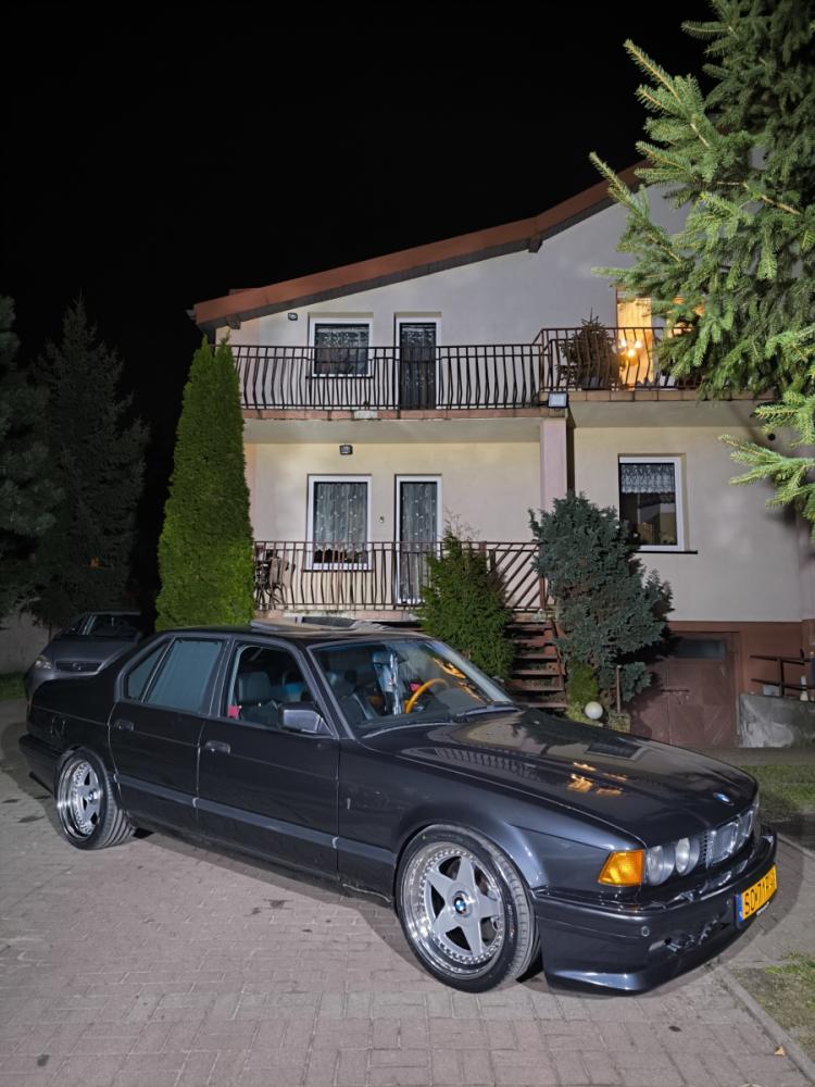 Oryginalne BMW 750i w pakiecie zewnętrznym BBS, wyposażenie jak na tamte lata jest top, wliczając oryginalne lampy xenonowe, czujniki parkowania, elektryczne fotele przód i tył, domykanie klapy bagażnika czy podwójne szyby. Auto stoi na porządnym sportowym zawieszeniu, nie na jakimś chińskim gwincie, w załączniku przesyłam zdjęcia.