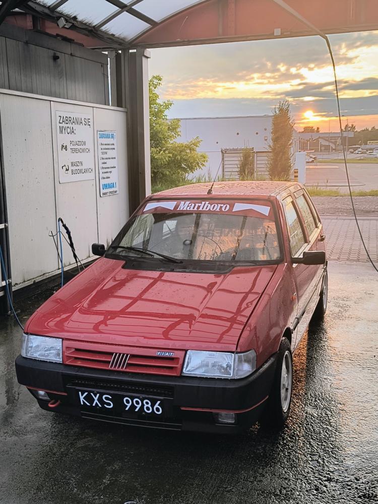 Fiat Uno 1.4 IES z polskiego salonu z bardzo dobrą historią kupiony od pierwszego właściciela z przebiegiem około 50 kkm. Przeprowadziłem w nim kilka zmian m.in zegary Digital które są bardzo nietypowe to Uno jest może trzecim Uno w Polsce który nadal posiada takie zegary. Kierownica z Fiata Coupe felgi Borbety wiele różnych naklejek z epoki i dużo by tu jeszcze wymieniać. Pozdrawiam